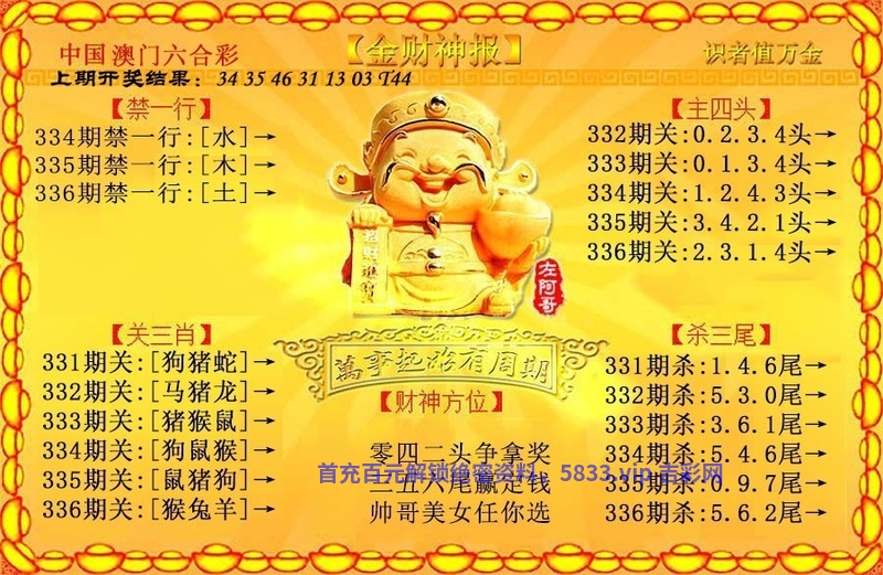 335期:发财五尾【0.2.3.4.5】开:狗44中